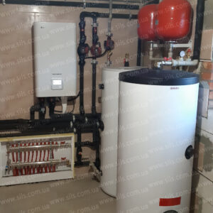 Плюсом цього проекту було те, що всі роботи по бойлерної були зроблені з нуля, ми не були обмежені існуючим обладнанням, і могли спроектувати і оптимально підібрати всі необхідні комплектуючі. Також, було досить місця для розміщення всього необхідного обладнання, яке тепер працює під контролем автоматики LG з можливістю регулювання температури різних контурів опалення, гарячої води. Тепловий насос управляється через інтернет.