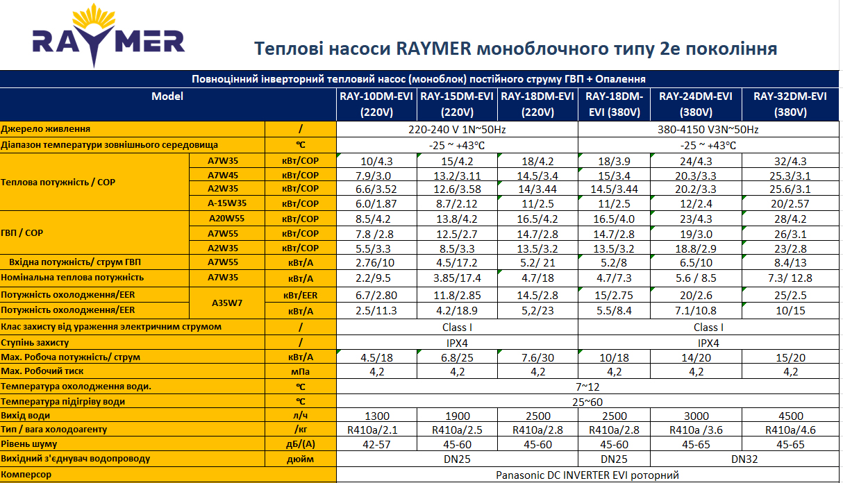 Тепловий насос інверторний Raymer RAY-15DM-EVI (220V) 15 кВт моноблочного типу