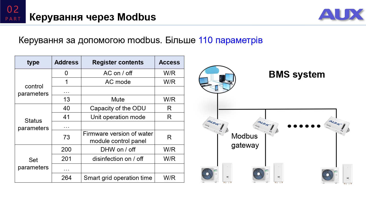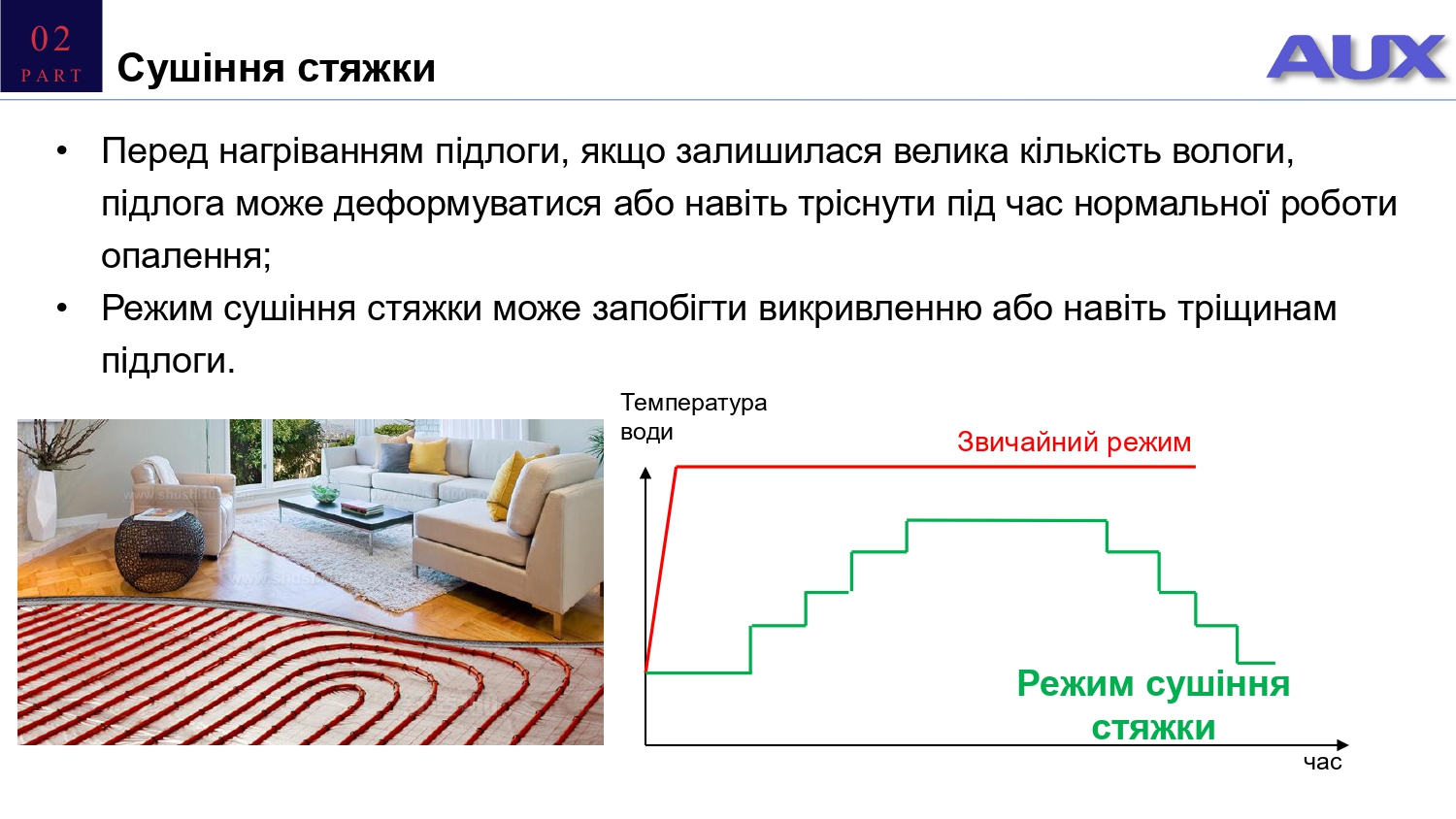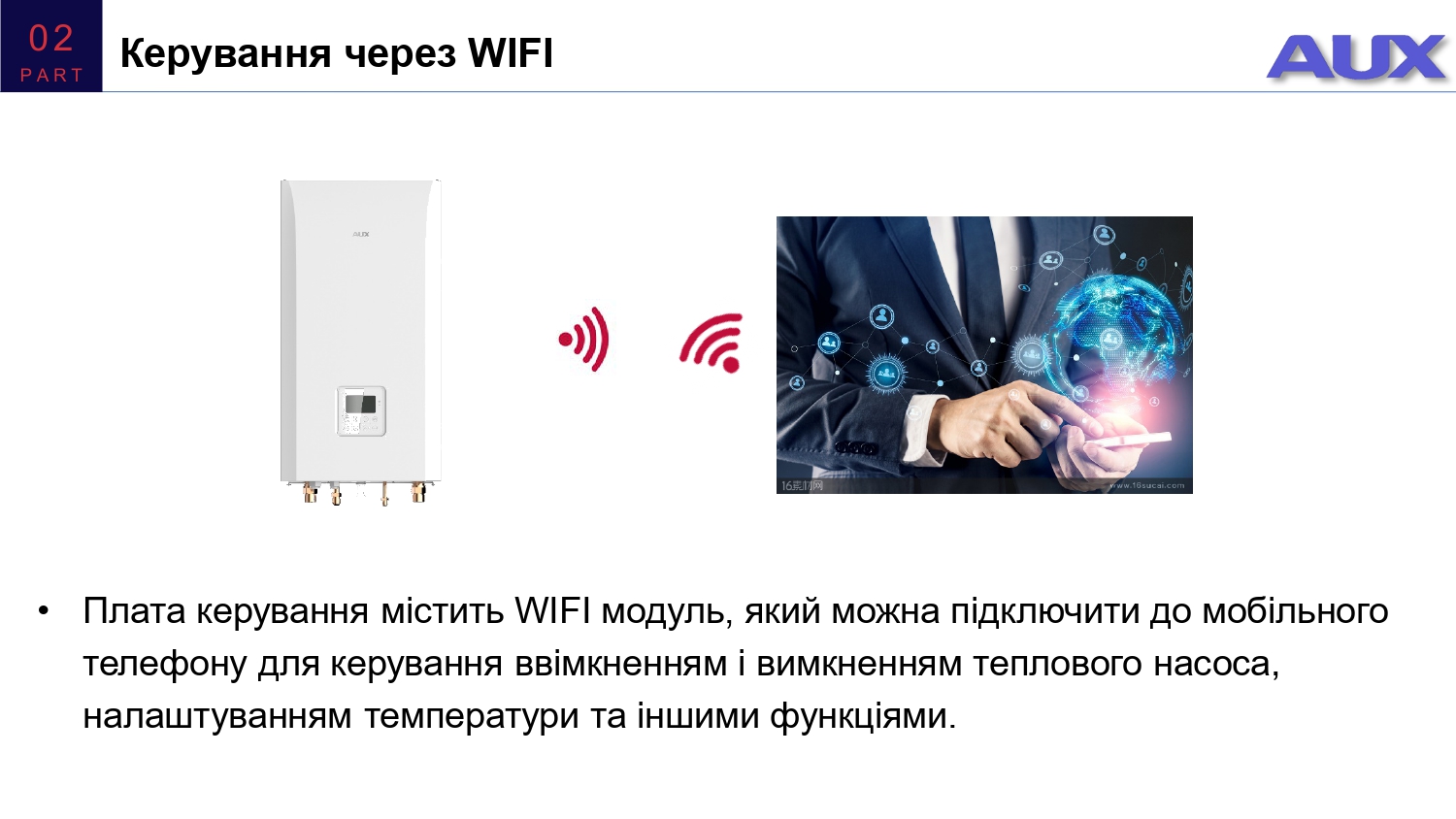Для забезпечення нормальної роботи та зручності контролери теплового насоса AUX оснащені меню російською мовою