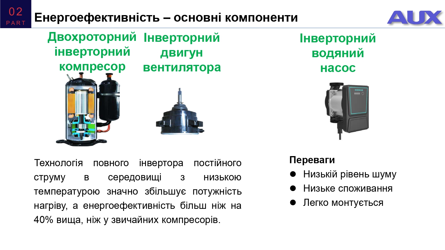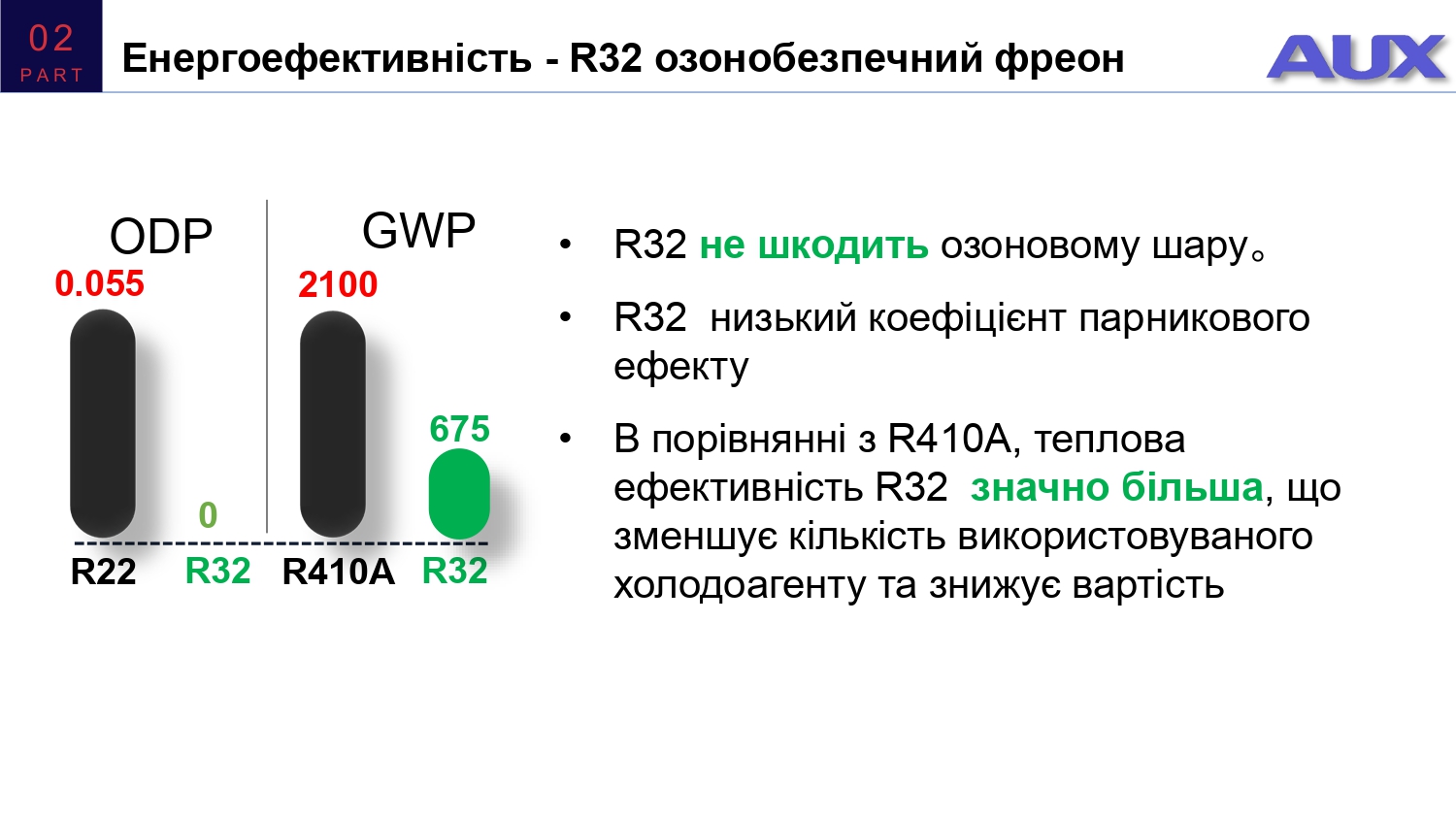 Він працює на основі екологічно чистого на сьогоднішній день холодоагенту R32.