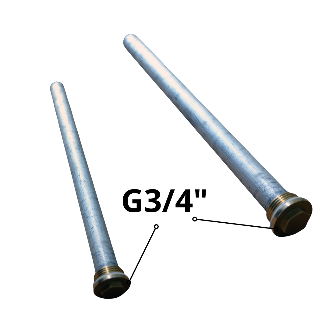 Магнієвий анод G3/4″ — це металевий стрижень, призначений для захисту водонагрівачів від корозії. Встановлений усередині бака для води, він притягує корозійні елементи, перенаправляючи їх вплив із внутрішньої поверхні бака на сам анод. Цей процес допомагає продовжити термін служби водонагрівача, оскільки в жертву приноситься анод, а не бак.