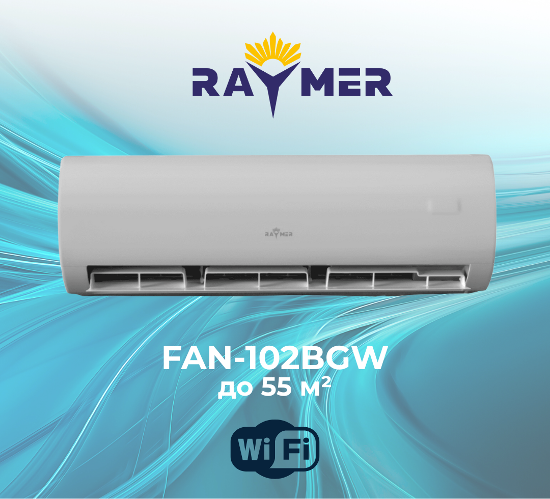Настінний фанкойл Raymer FAN-102BGW, вбудований Wi-Fi, інверторний 1020 м³/год, 5.41 кВт, до 55 м²