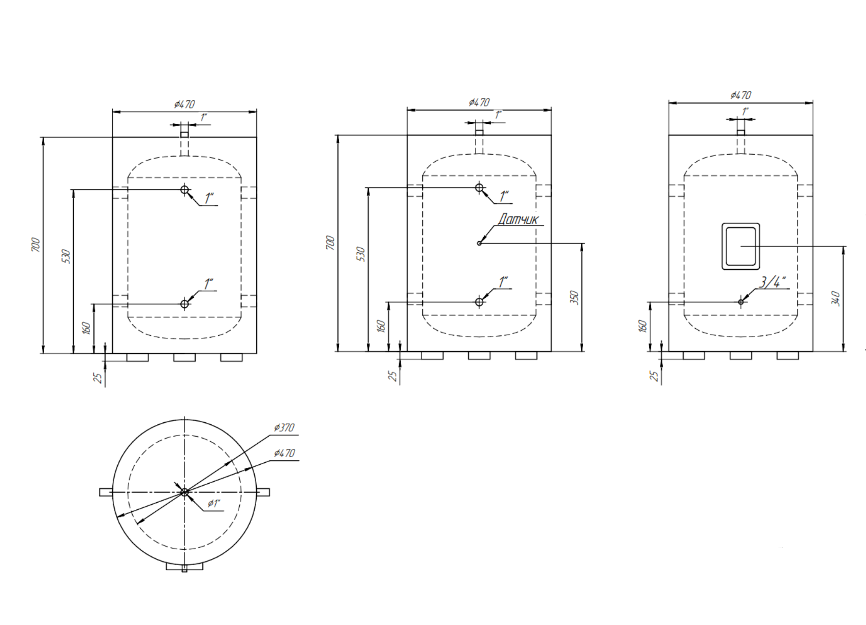 - 1 x G1,5″ для електро-тена, закрито заглушкою;