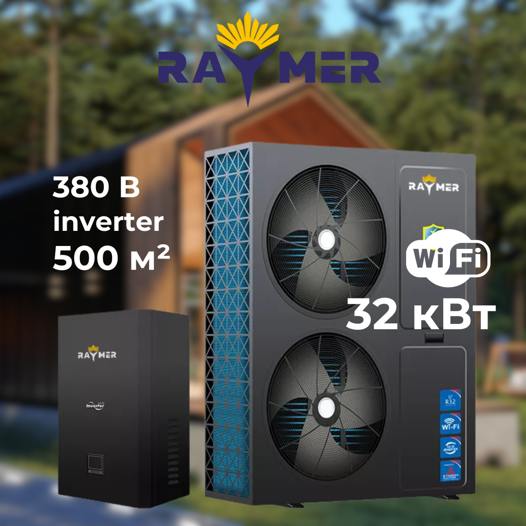 Тепловий насос Raymer RAY-32DS2-EVI- має потужність 32 кВт, що робить його ідеальним для ефективного обігріву приміщень площею до 350 кв.м. Він забезпечує значну економію електроенергії до 80% у порівнянні з традиційними системами опалення, що дозволяє знизити витрати на опалення.