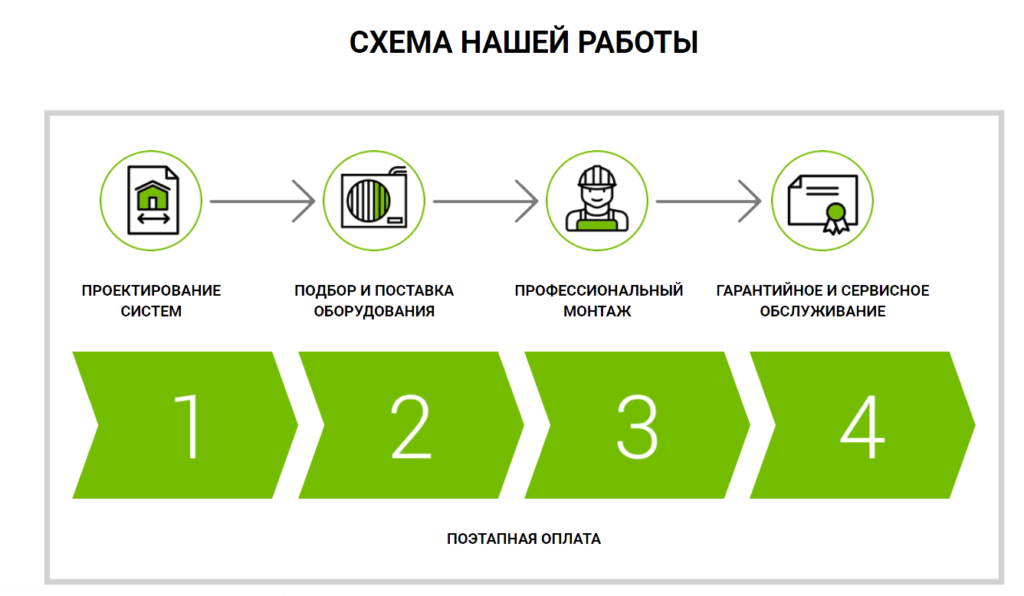 Для вас мы разработаем всю необходимую техническую документацию, с расчетом на повышения энергоэффективности и теплоотдачи оборудования, а так же максимальном снижении затрат без потери качества. Выполняем все стадии от подбора, монтажа и пусконаладки, до ввода в эксплуатации и гарантийного и пост-гарантийного обслуживания.