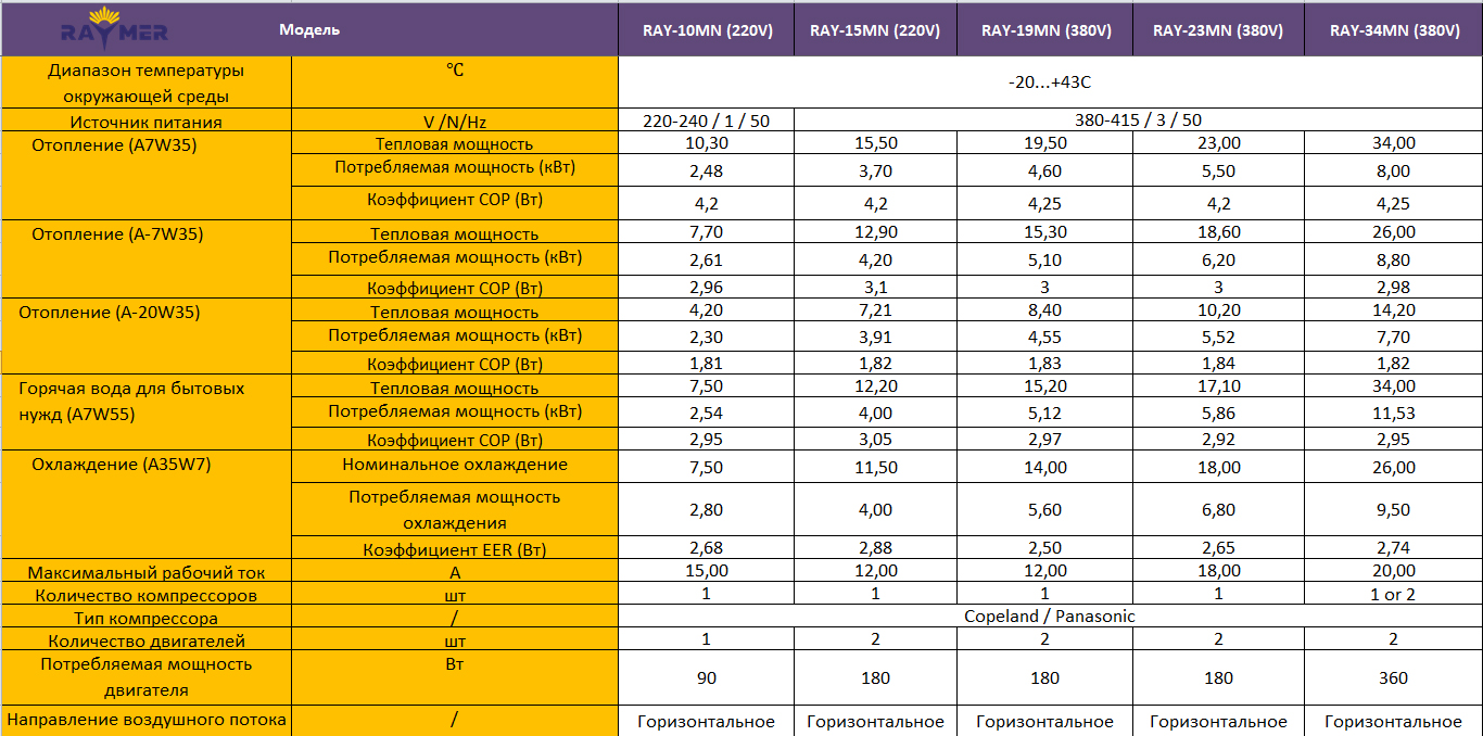 Используя новейшие технологии Raymer – в тепловом насосе моноблочного типа серии MN достигается температура воды до 60°C и гарантируется максимальная эффективность.