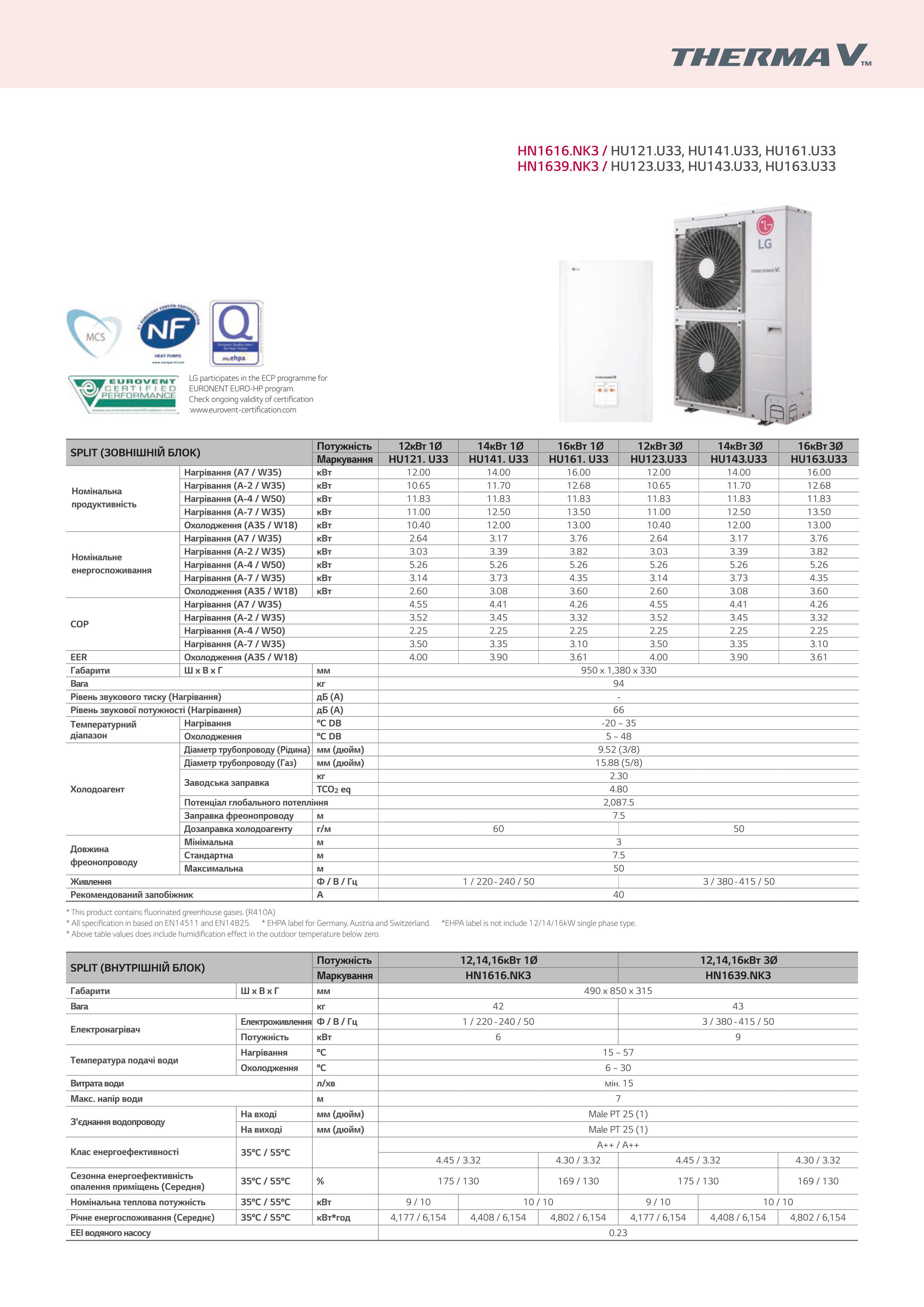 Инверторный тепловой насос воздух-вода LG Therma V – HN1616.NK3, HU161.U33