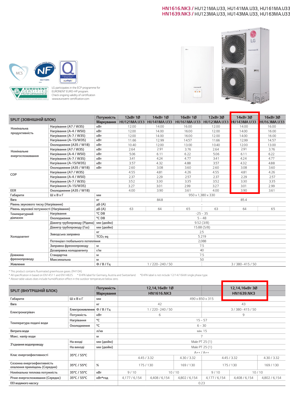 LG Therma V Series IV – HU143MA.U33 / HN1639.NK3 Инверторный тепловой насос воздух-вода 4 поколение (380 V, 3ф) (14 кВт)