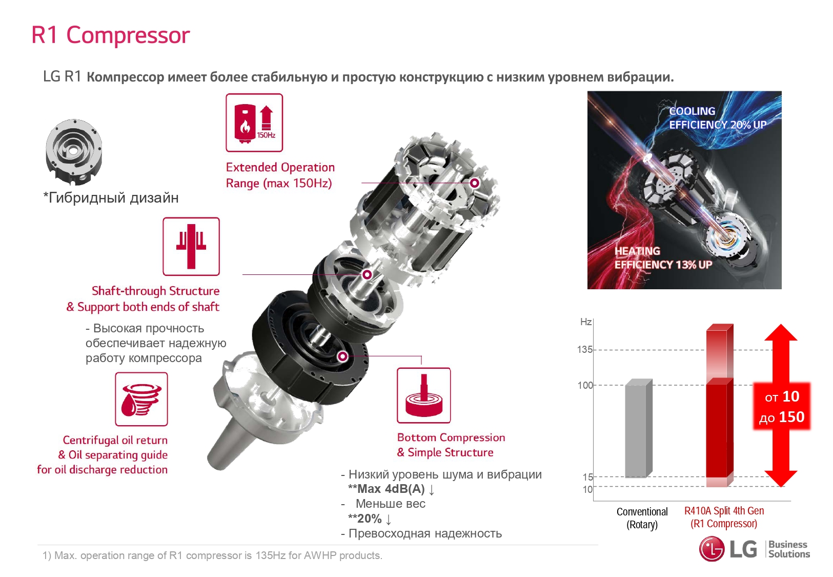 Четвертое поколение тепловых насосов LG THERMA V с усовершенствованным компрессором R1