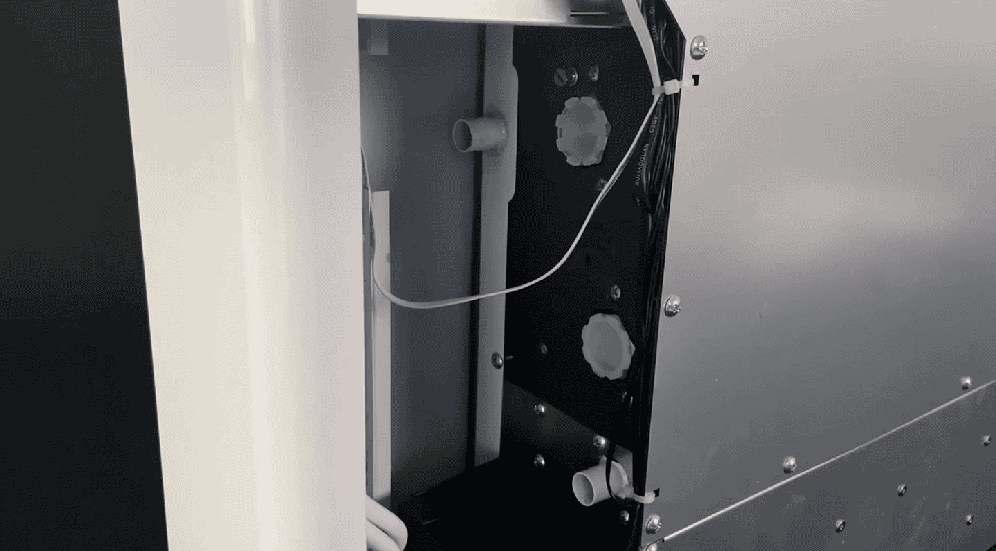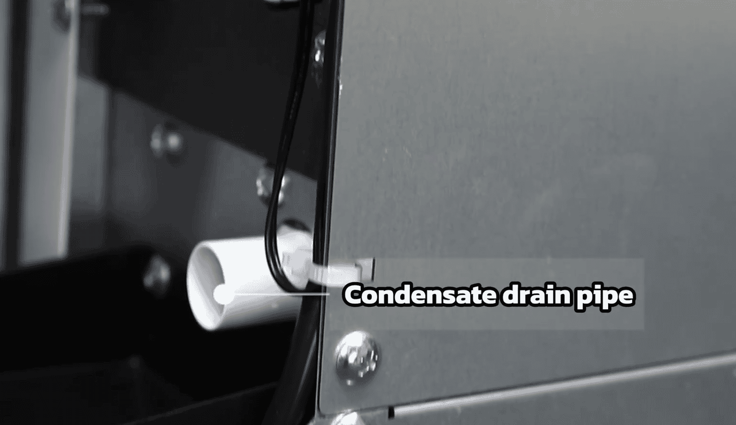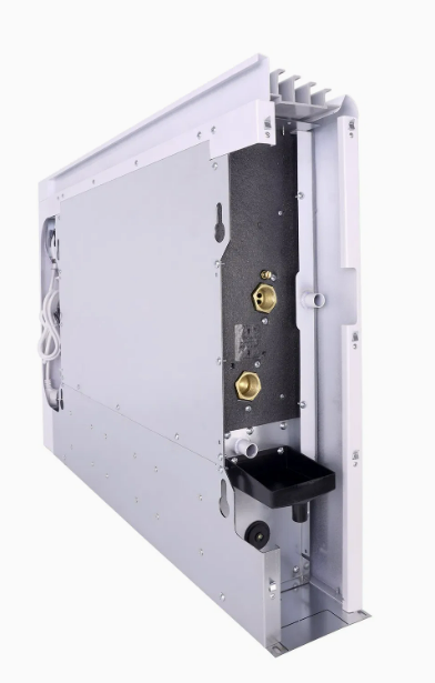 - Поддон для конденсата изготовлен методом штамповки и покрыт антикоррозийным слоем краски, что предотвращает протекание и повреждение корпуса.