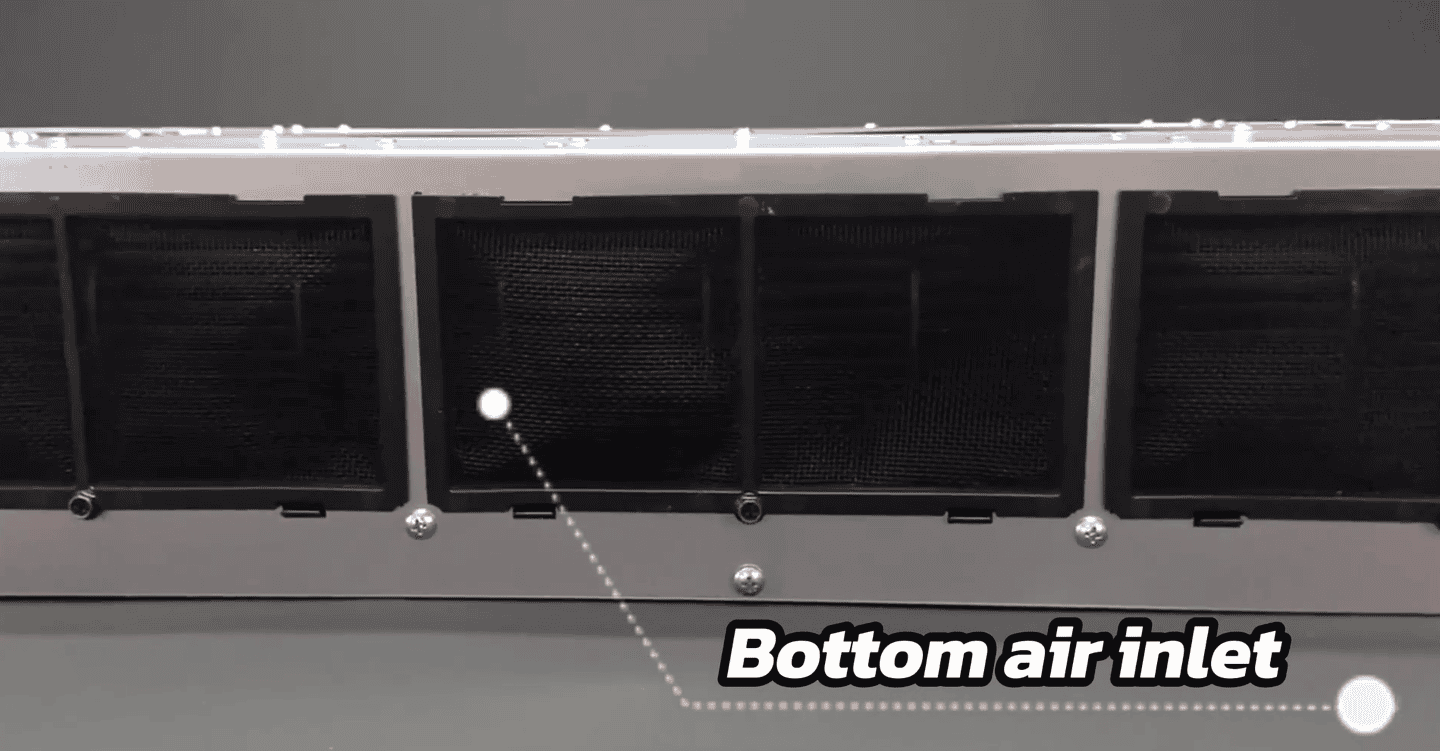 - Вход воздуха расположен в нижней части корпуса, что дополнительно снижает уровень шума на 3–9 дБ, при этом сохраняя высокую производительность.