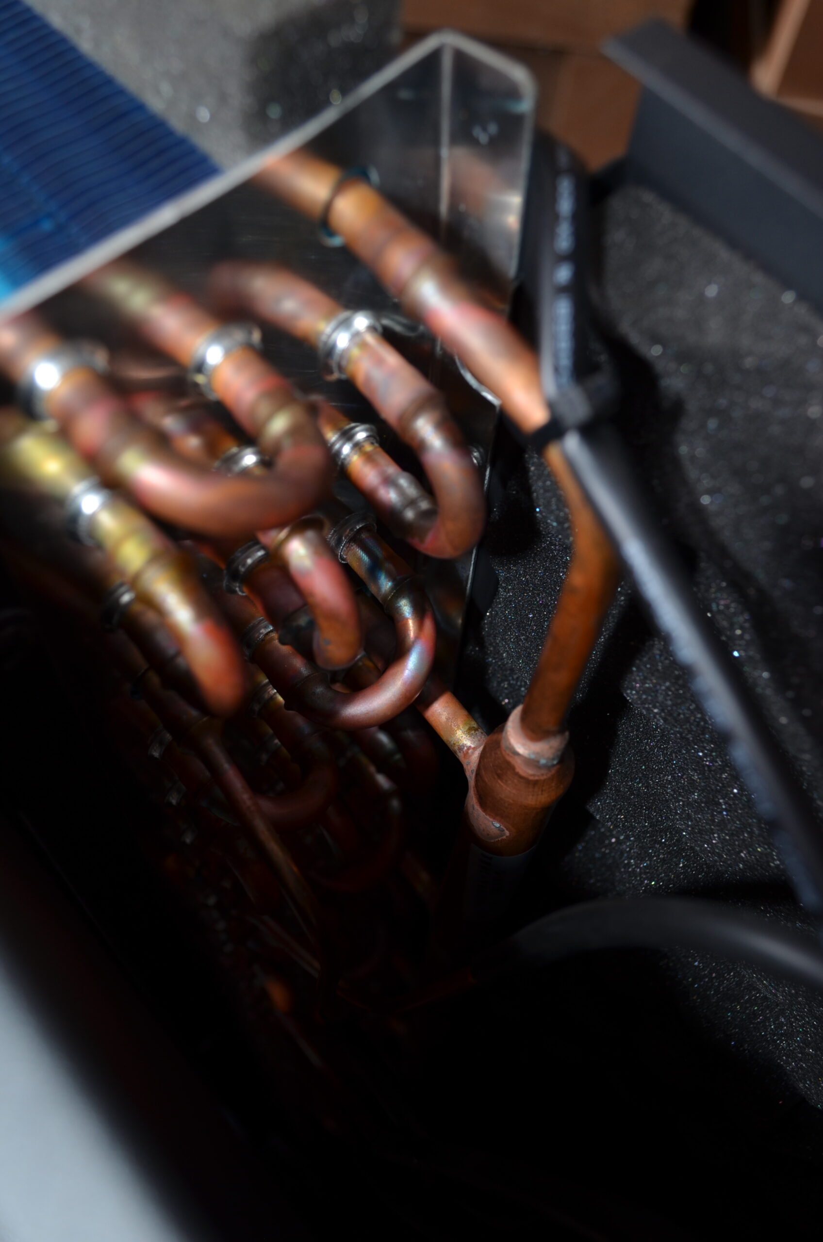 Во время работы насос привлекает наружный воздух через этот теплообменник. Низкотемпературный воздух обогащается теплом, извлекаемым из хладагента, и становится теплее.