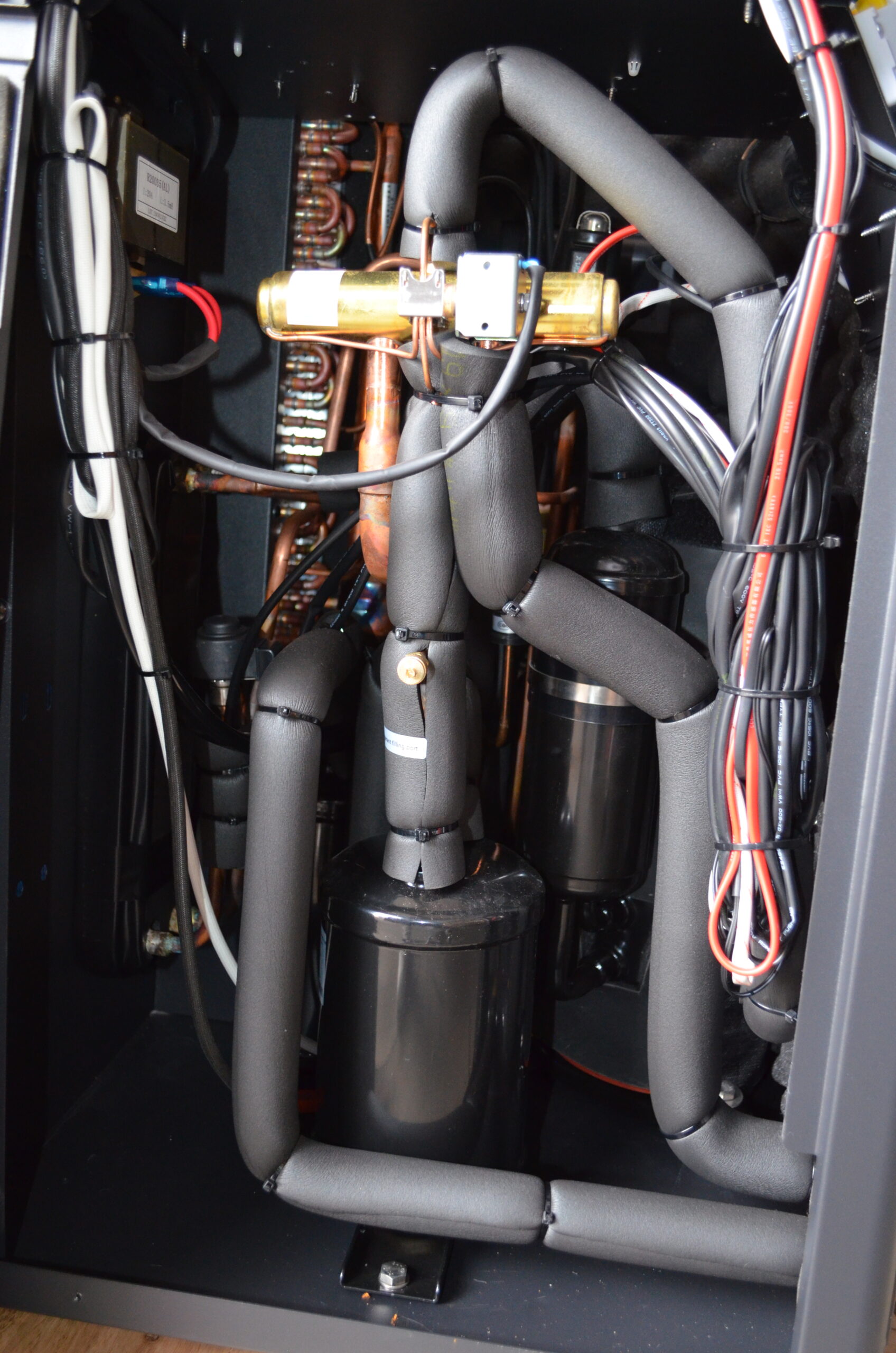 Тепловые насосы Raymer RAY-15DS2-EVI используют инверторные компрессоры постоянного тока Panasonic. Эти компрессоры являются компрессорами с переменной скоростью, питающиеся от инверторов постоянного тока. Скорость модулируется с помощью внешнего частотно-регулируемого электропривода — для управления скоростью компрессора. Скорость потока хладагента модулируется посредством изменения скорости компрессора. Коэффициент снижения зависит от конфигурации системы и производителя. Он модулируется от 15 или 25% до 100% при полной мощности. Это означает, что тепловой насос, работающий с инверторным компрессором постоянного тока, может легко регулировать свою производительность в соответствии с потребностью, просто изменяя частоту вращения компрессора. В отличие от обычных одно- или двухступенчатых компрессоров, тепловые насосы, оснащенные инверторным компрессором постоянного тока, не включаются и не выключаются, а работают непрерывно на более низких оборотах.